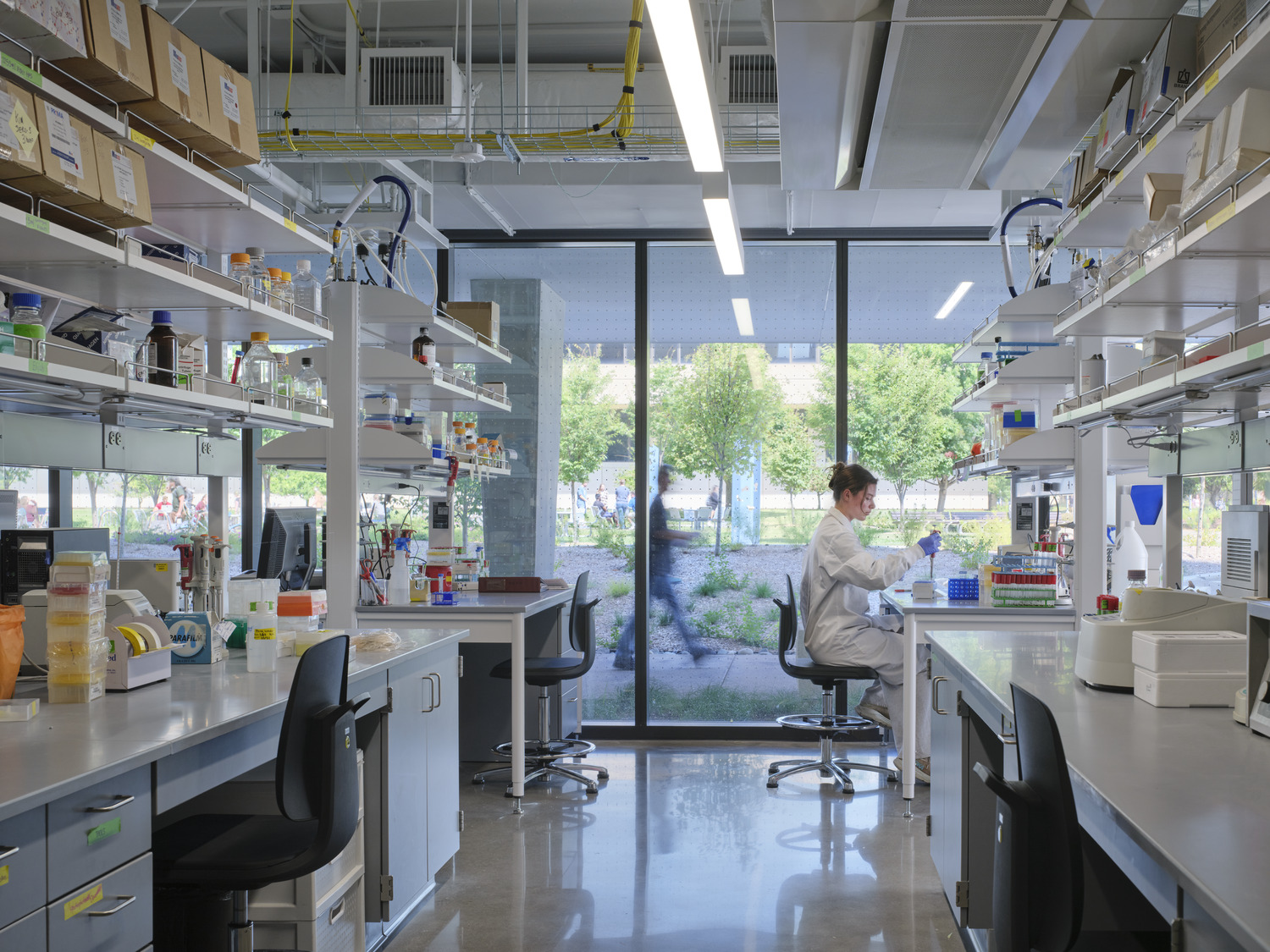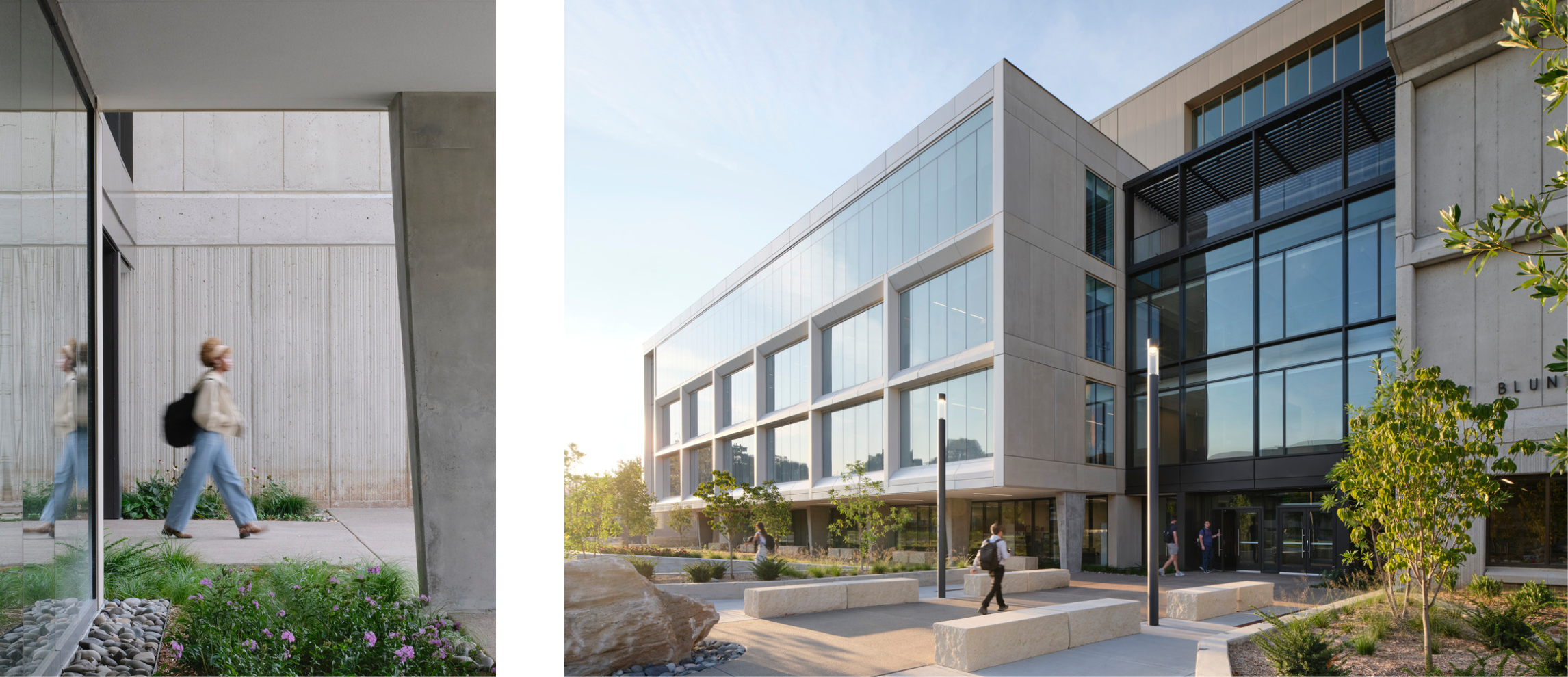 The Blunt Hall Addition advances this vision though the introduction of new flexible and state-of-the-art laboratories, updated lecture halls, and collaborative spaces that enhance teaching and research. Laboratories are equipped with upgraded systems, designed with flexibility to adapt to evolving pedagogy and future research methods, and guided by human-purposed design strategies. Generous daylight-filled spaces and campus views contribute to student and faculty well-being while showcasing the innovative work of the CNAS community.