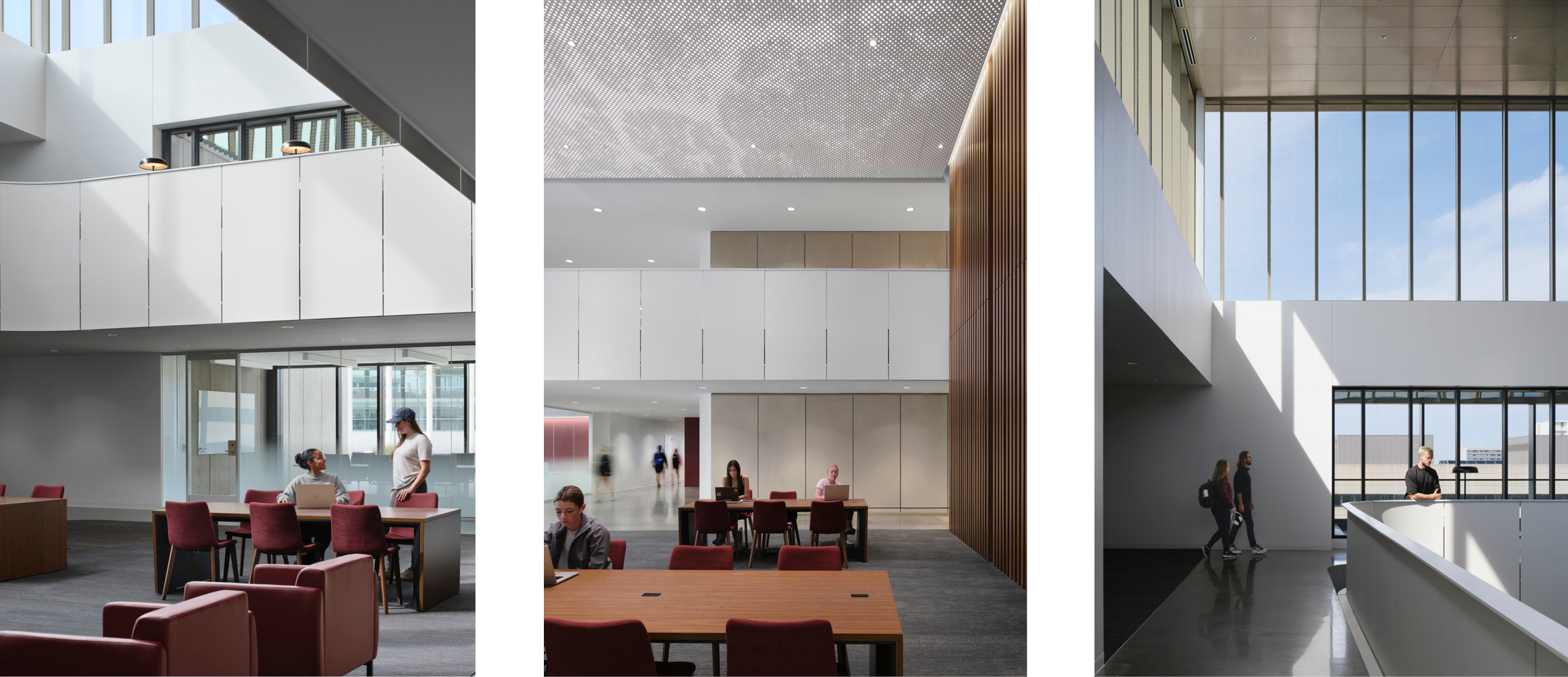 The common spaces are designed to highlight the interdisciplinary nature of the college, reflecting the range of natural and applied science teaching and research that occurs within the building.