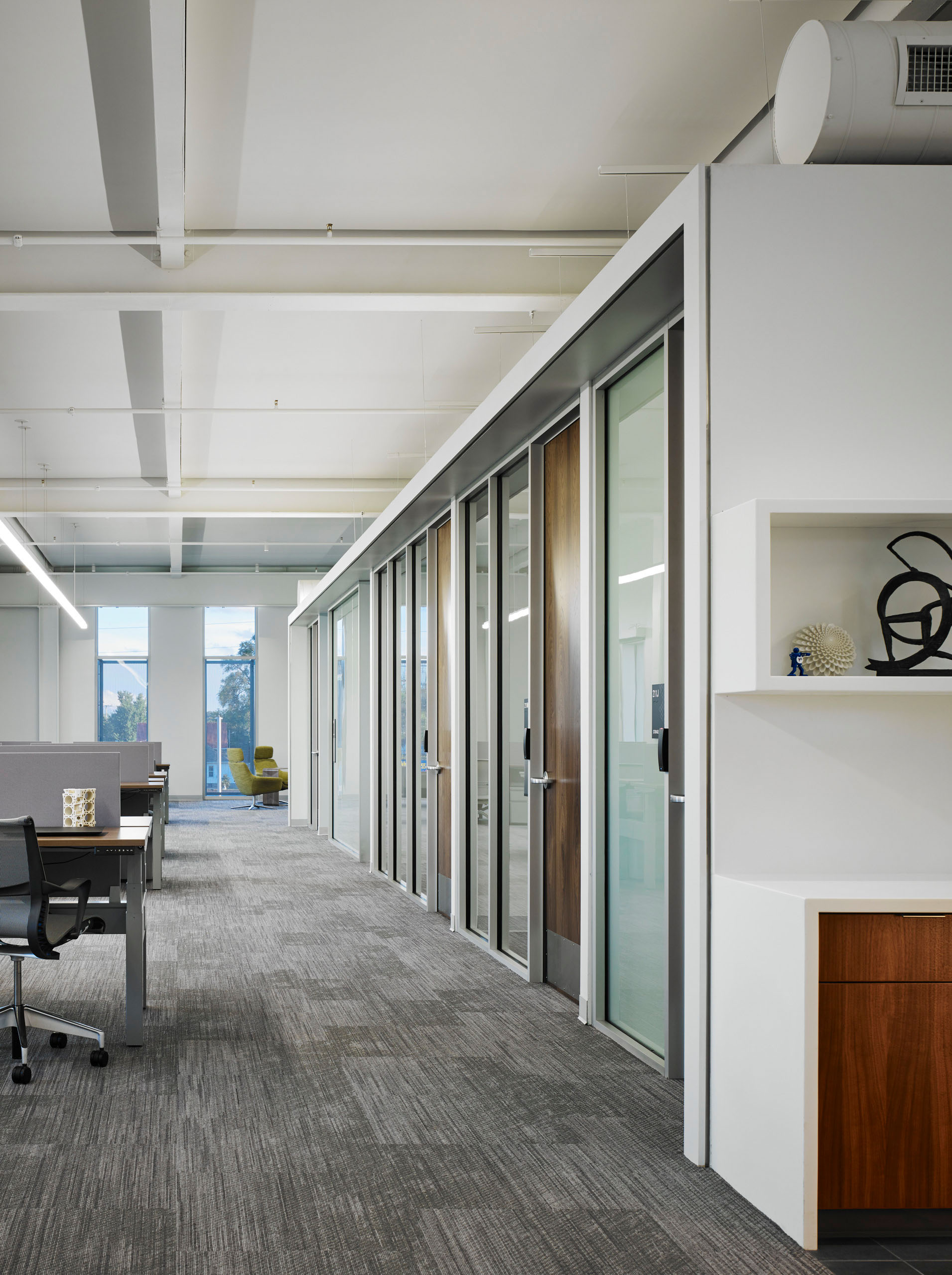 The CAET building’s design was highly focused on community input and industry needs in order to provide a direct, training-to-job pipeline for students. Focus meetings began early in the concept creation to inform the programming and spaces needs for the facility, and included students, faculty, industry partners, and area economic development authorities. These informative, inclusive meetings continued in building programming and design and extended after completion of construction to inform ongoing programming and student and industry jobs training.