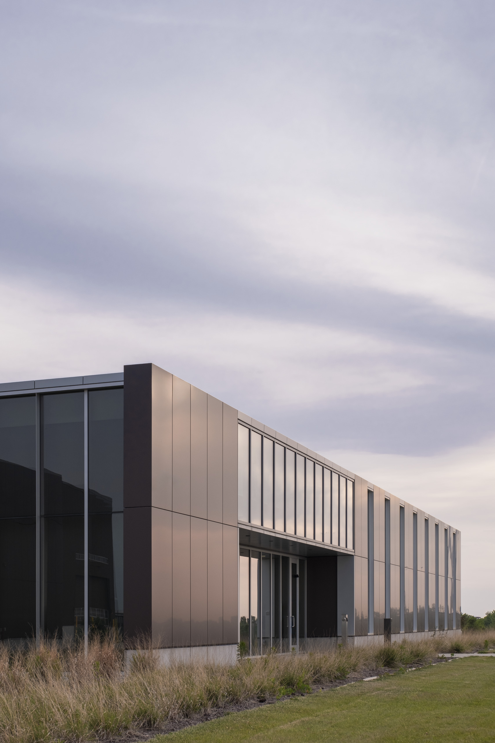 The Office and Service Center in Cedar Rapids, IA, supports this client’s commitment to excellence in customer service operations and associated office support. The guiding goal for this new facility was to create both a highly durable and low maintenance building that enables efficient and safe operations while providing a welcoming front door for walk-in customers. The building is organized to serve two primary functions for the client, the first supporting operations in the field through electrical and gas maintenance space, and the second supporting customer service with a dedicated office environment.