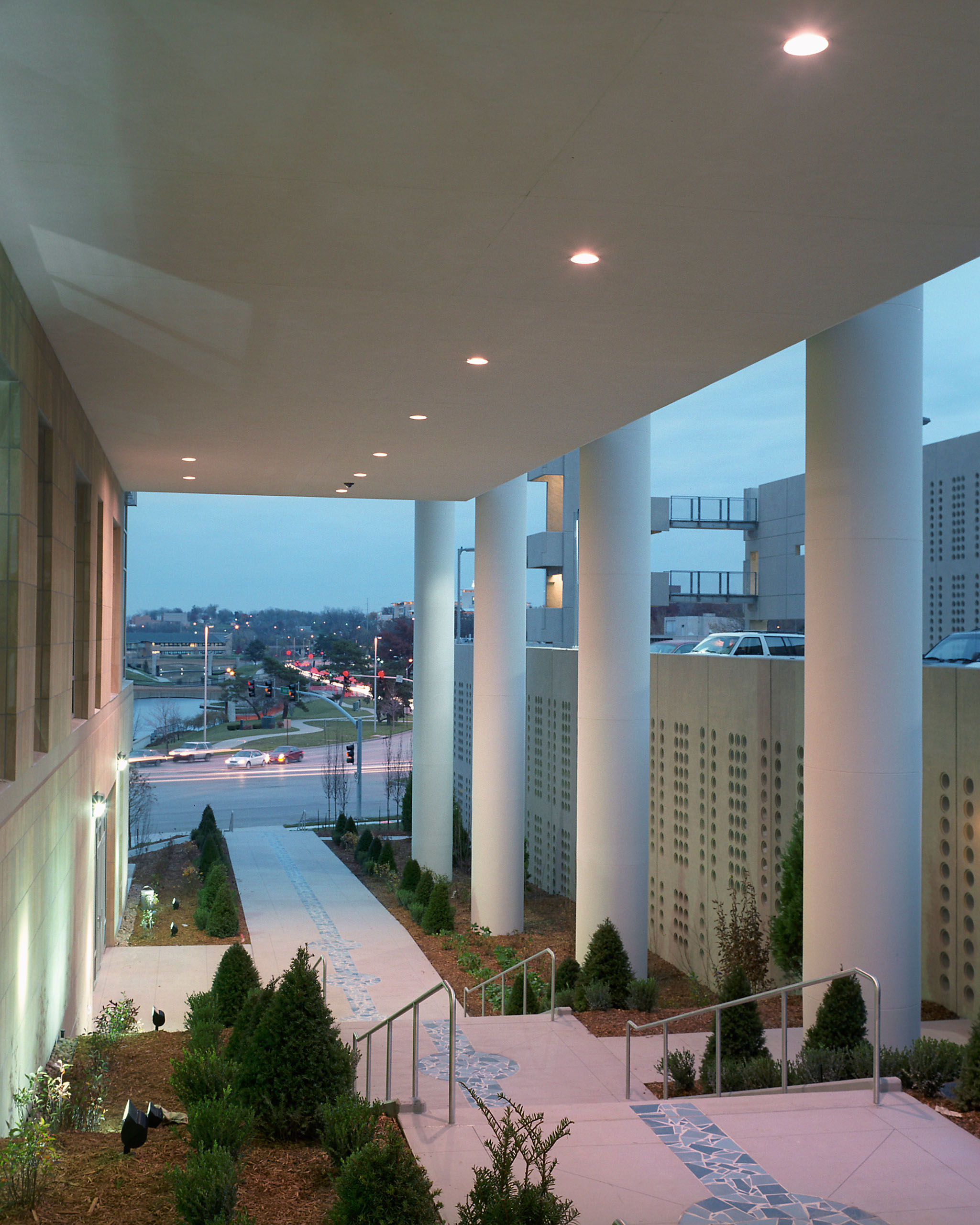 Plaza Colonnade is an innovative and successful public-private partnership comprised of commercial and institutional uses. The site, at 48th and Main in Kansas City, is positioned with dramatic views to the renowned Country Club Plaza mixed-use district and was previously occupied by a cherished, but structurally failing library. The new solution solved the fiscal and community needs of the library and neighborhood with a new mixed-use program. In addition to the Kansas Public Library’s Plaza Branch, the development includes nine floors of speculative office space, a seven-level parking structure and retail venues along a portion of Main Street.