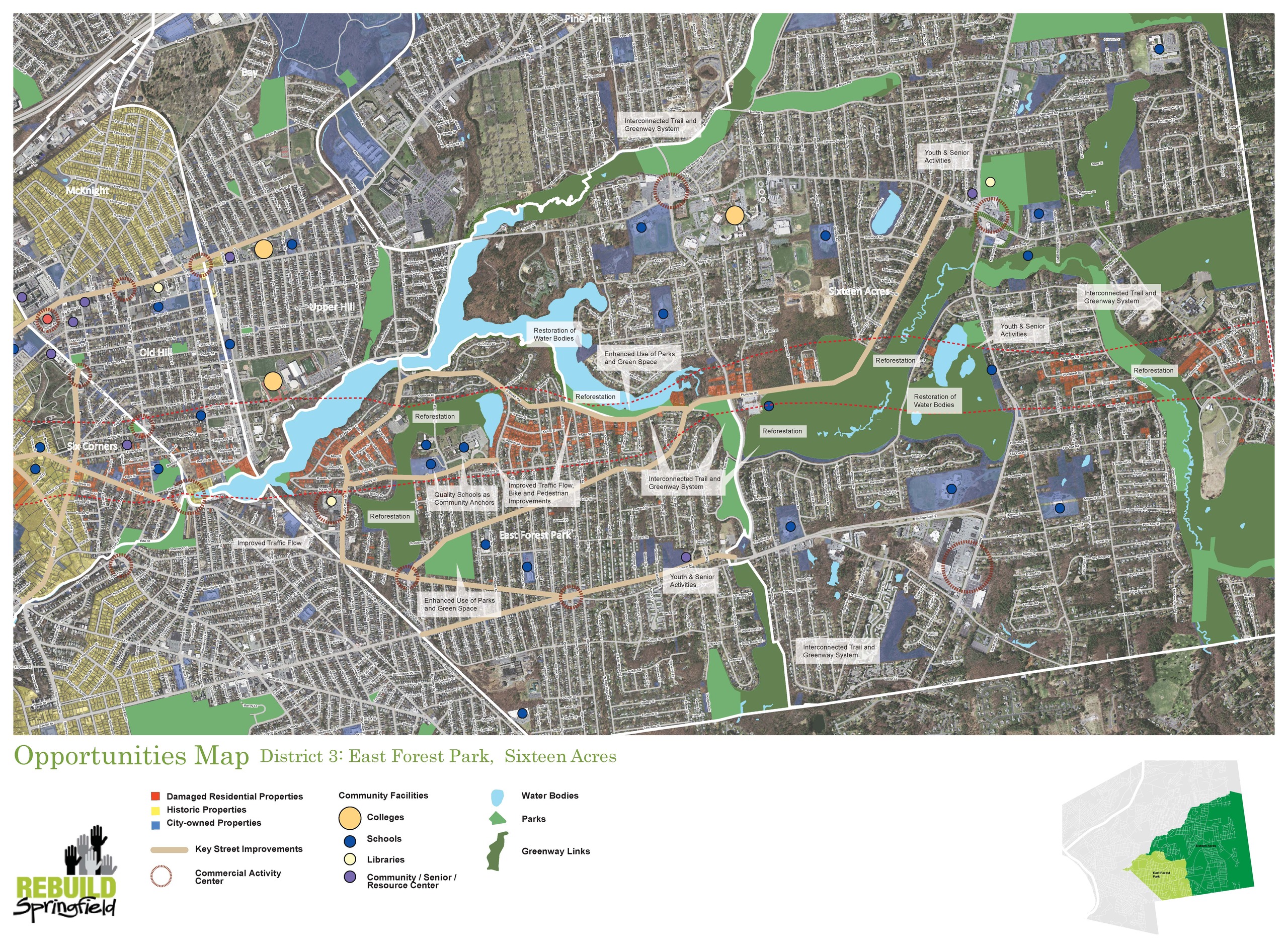 Springfield, like many other US cities, experienced deindustrialization and disinvestment in the central neighborhoods with certain areas plagued with absentee landlords, vacant properties and crime. The tornado, for all its devastation, created an opportunity for the City of Springfield to go beyond recovery and harness the collective will of the people to shape its future, while preserving and enhancing the historical and cultural underpinnings that make Springfield so special.